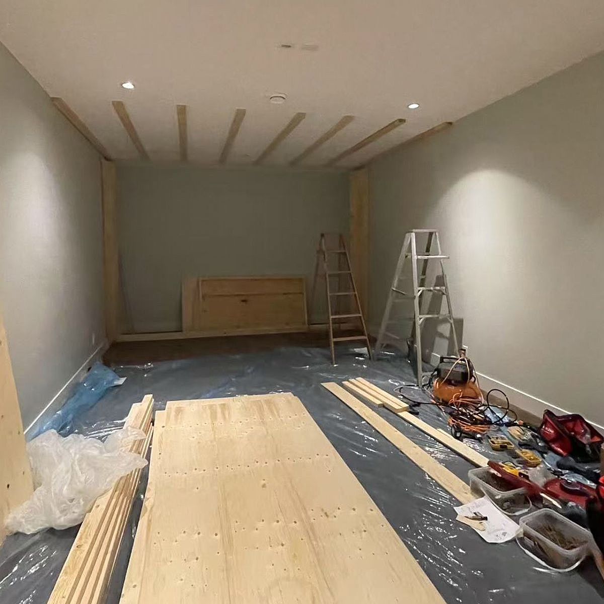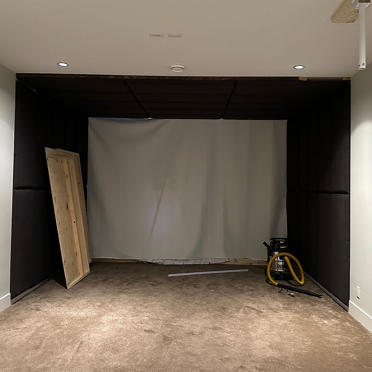 For this project, I was responsible for building the screen frame and acoustic panel frames, as well as installing the acoustic panels. The frames were carefully constructed to ensure stability and precise fitment, while the acoustic panels were installed to enhance sound absorption and improve the overall experience of the golf simulator.